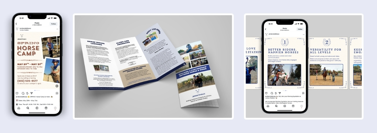 We rebuilt trust by creating a clear, consistent message: Jordan Stables isn’t just a stable; it’s a professional, welcoming program where riders learn, grow, and build confidence. That message now runs through everything: from lesson brochures and event posters to social media captions and website copy.