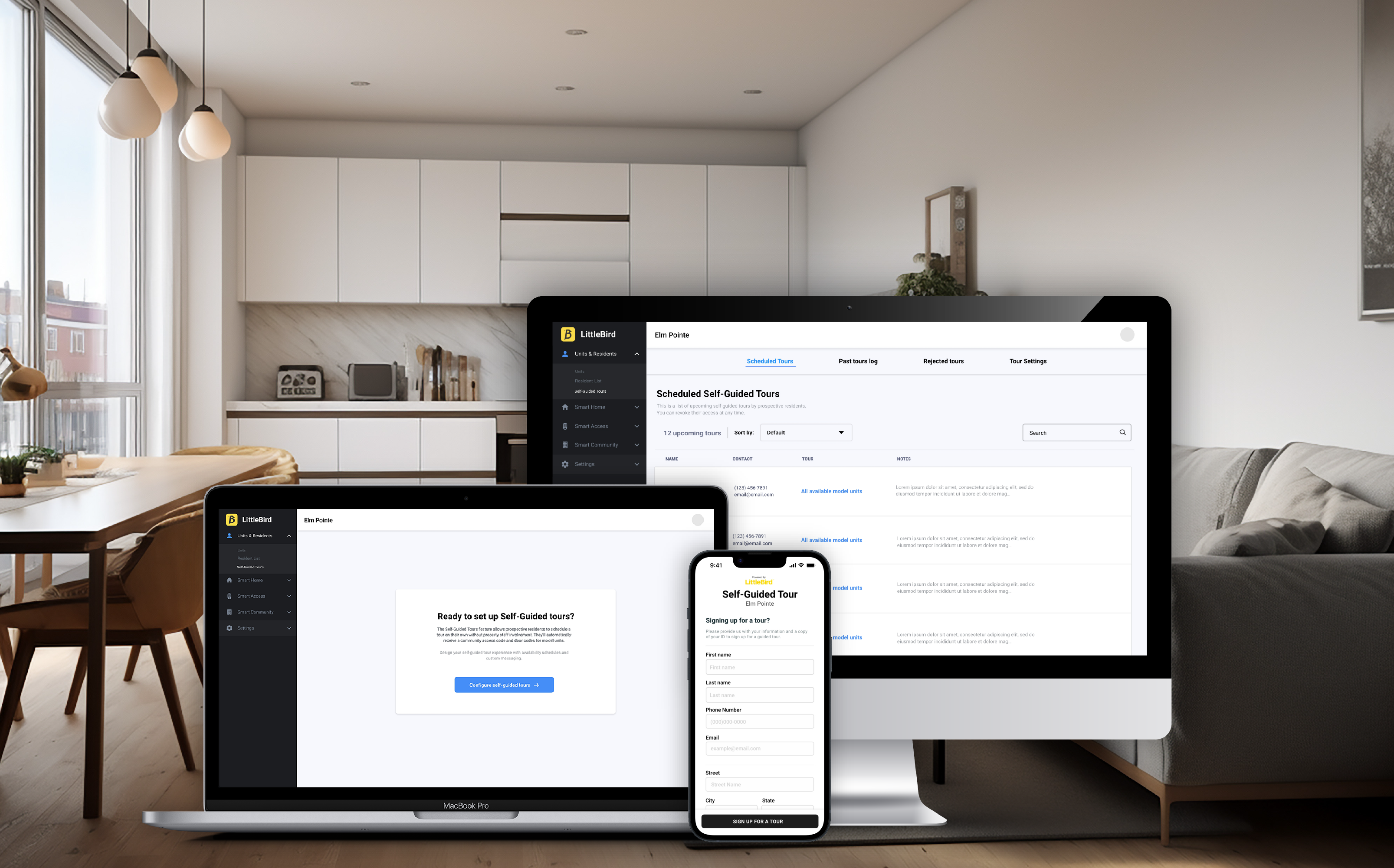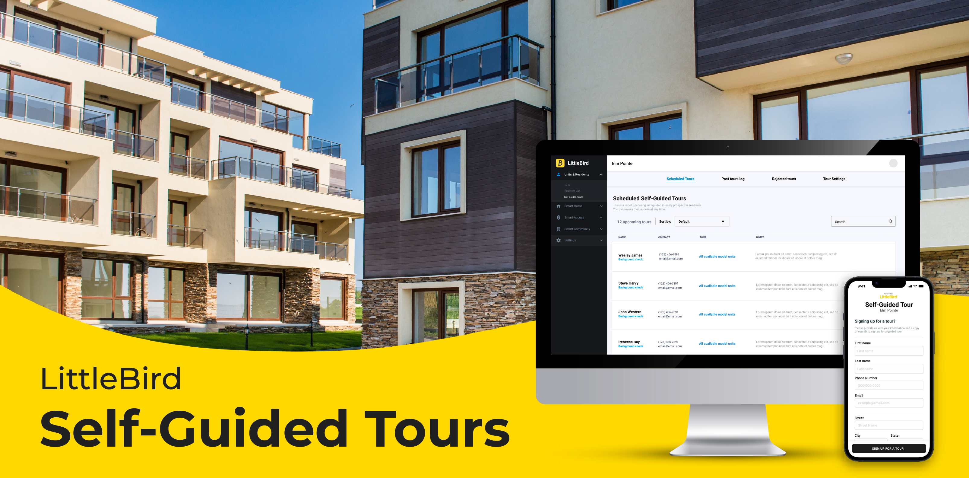 LittleBird’s Self-Guided Tours feature enables property management teams to engage prospective residents by opening model units during designated hours, allowing tours at their convenience while extending availability beyond office hours. As both Product Manager and UX Designer, I led the project from concept to launch, defining the business need, creating requirements and designs, managing an offshore development team, and collaborating with marketing and sales on the go-to-market strategy, pricing, and training materials.